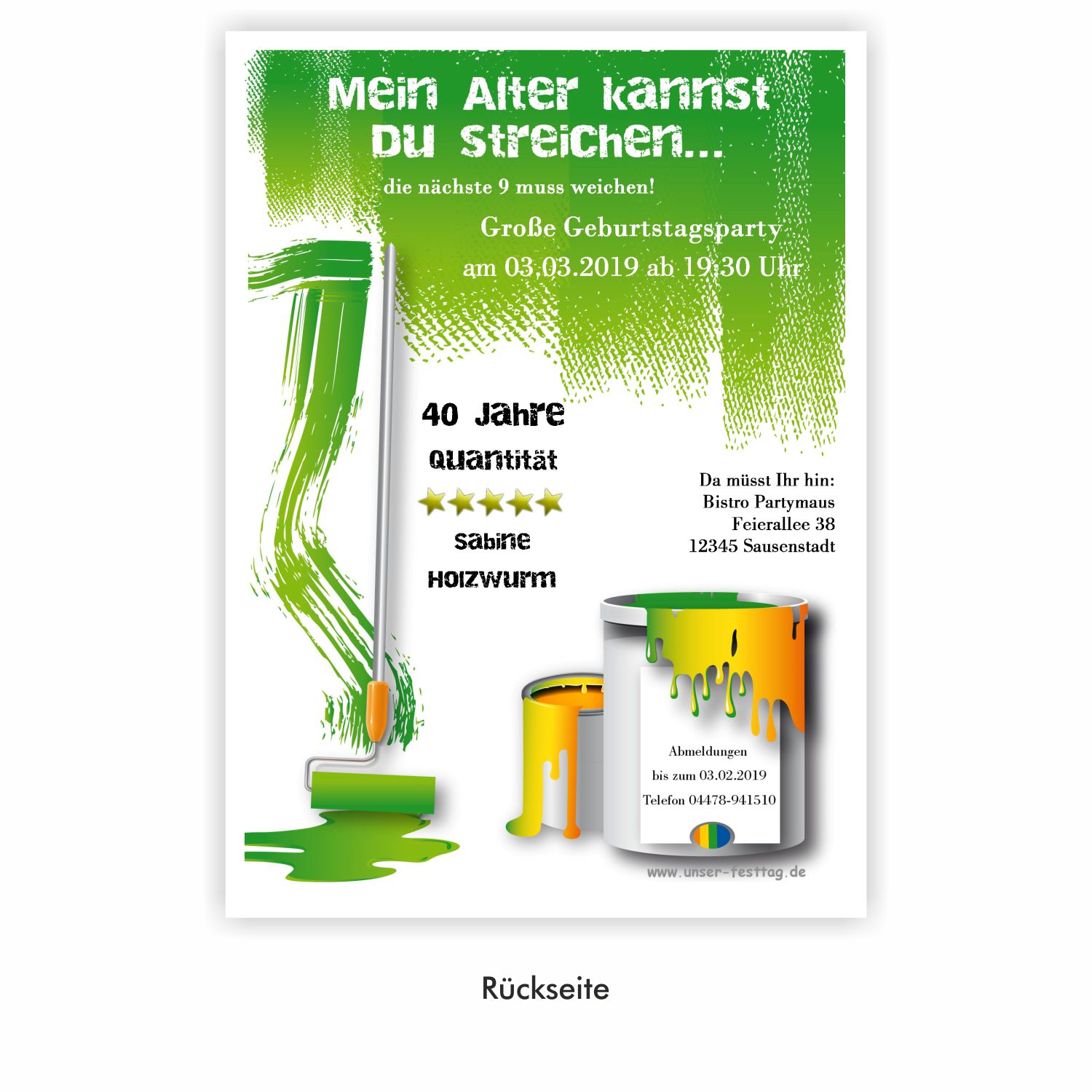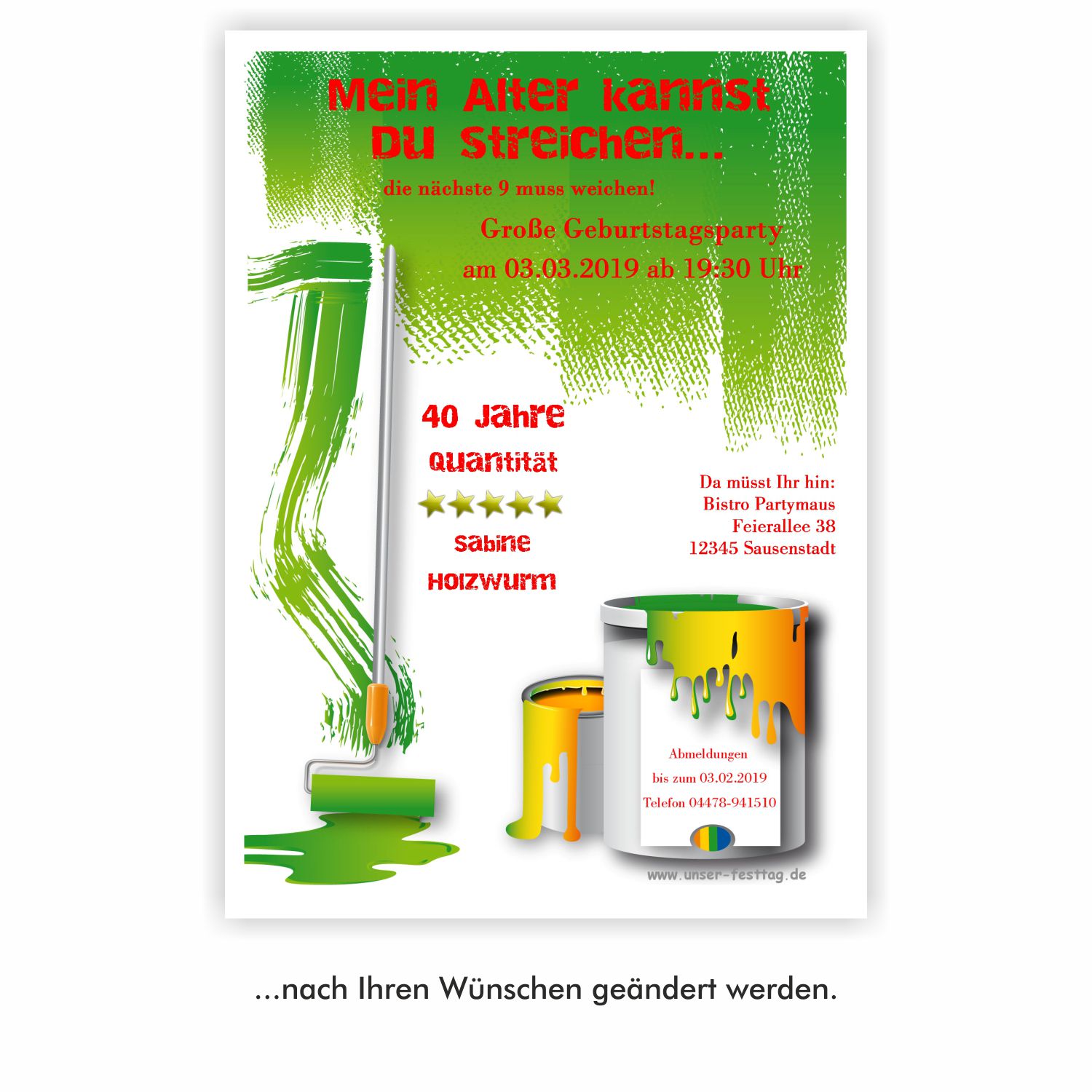 Malerin – 30233 Musterbilder zum Vergrößern der Musterbilder einfach einmal auf das Bild klicken Hallo, leider gibt es Probleme mit diesem Formular. Bitte füllen Sie dieses Formular nur über den von uns zugesandten Link aus, da Sie es sonst nicht absenden können! Bei Fragen rufen Sie uns bitte an: 04478-941510 oder schreiben Sie uns eine Mail: Problem melden Vielen Dank für Ihr Verständnis Ihre Wunschdaten hier bitte eingeben Kartenfarbe blaugrünorangelila Vorderseite Alter Einladungstext, Datum, Uhrzeit und Ort der Feier. Mein Alter Du verstrichen die nächste Große Datum Da Bistro Straße Ort Abmeldung, Alter und Name des Gastgebers Abmeldung bis Tele Alter Qualität Name Name Benötigte Kundendaten Diese Angaben benötigen wir zum Zuordnen Ihrer Daten. Bitte füllen Sie alle Felder, soweit möglich, aus. Danke. Bestellnummer* Position Möchten Sie uns etwas mitteilen? Haben Sie spezielle Wünsche? Telefonnummer (nur für Rückfragen) Anrede FrauHerrFam. Vorname* Nachname* E-Mail* An diese Adresse senden wir Ihnen Ihre Muster/Korrekturen E-Mail eingeben E-Mail bestätigen This iframe contains the logic required to handle Ajax powered Gravity Forms.